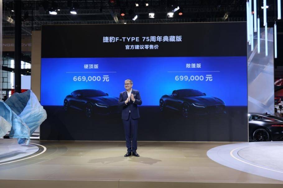 车展现场,捷豹F-TYPE 75周年典藏版正式上市。捷豹F-TYPE 75周年典藏版选用经典的捷豹家族式规划言语,新车供给了全新吉奥拉绿车漆配色,调配包括亮黑色格栅饰框、侧通风口、后保险杠饰件、黑色捷豹字标及跃豹标识等在内的专属黑色外观规划套件。一起车身上装备75周年专属徽标。