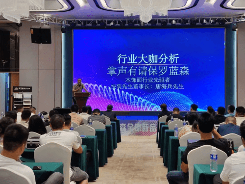 其次进行保罗蓝森新品发布环节,由市场营销负责人胡荣先生向大家介绍了本次新品发布的“主角”——保罗蓝森核心产品全新料无铅木饰面&超木板,提到,技术创新是推动行业发展的核心动力。保罗蓝森坚持原创设计结合市场趋势,携手意大利与中国美院设计师传承,致力于打造具有时尚,质感,超前的产品。