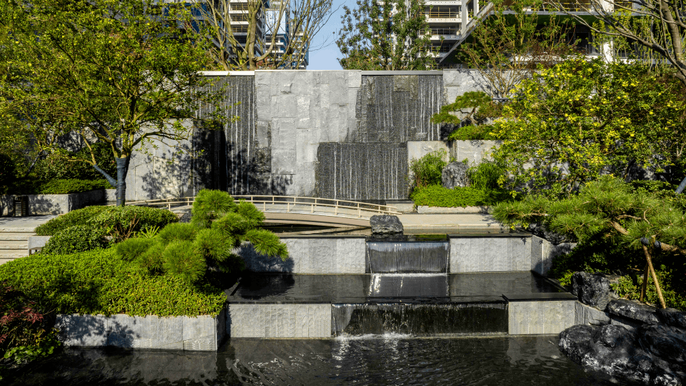 众所周知,园林做水景本钱高、保护不易,所以一般房企不会容易做,而想把水景做美观,也很难。