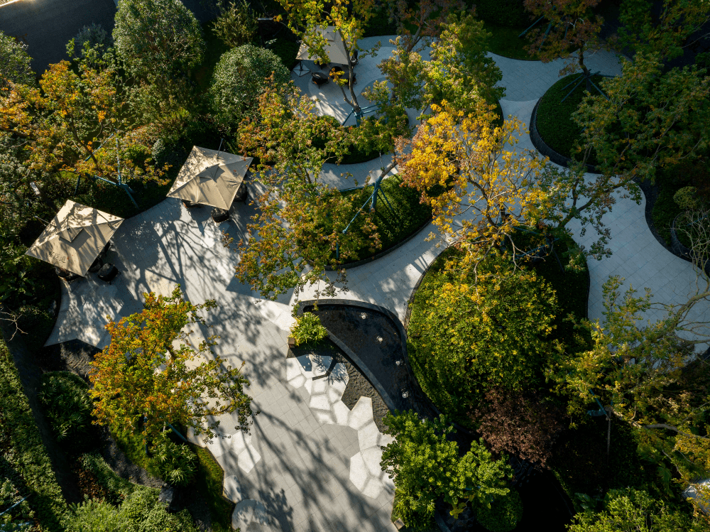 其点睛之笔,则是拱桥元素的规划,给了业主更近间隔打卡赏识整个叠水美景,人与景之间的边界也在此被打破。