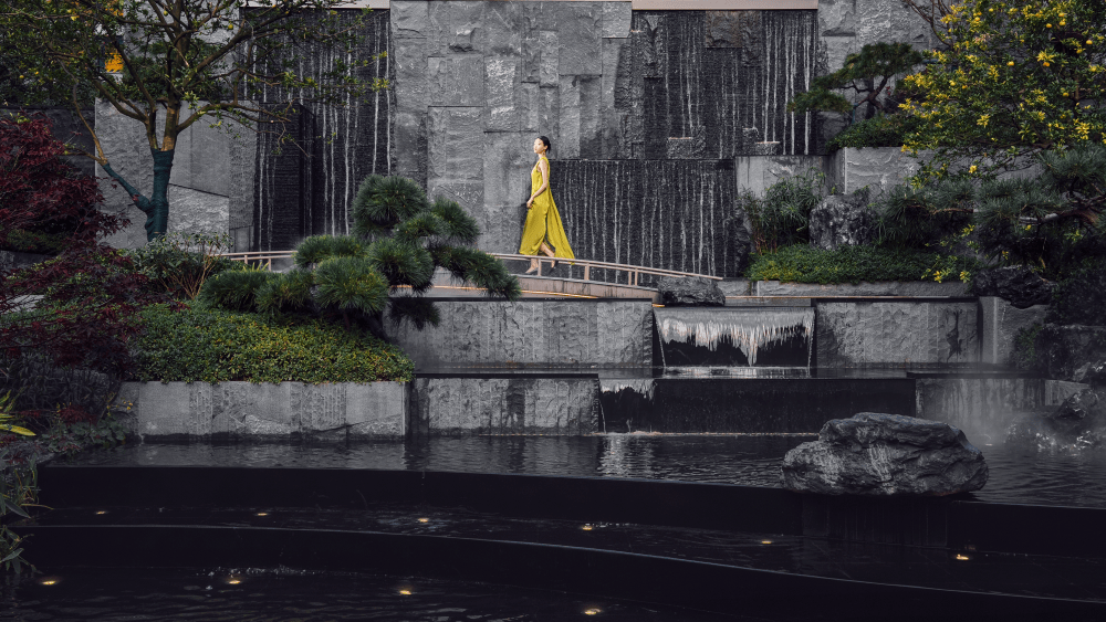 运用“山”、“水”、“树”、“石”等经典元素,经过特别方法堆叠,营建出流瀑、崖瀑、层叠瀑等多重景象。