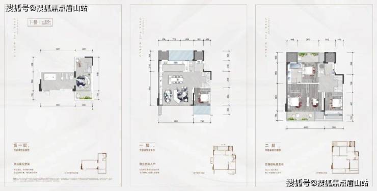 其中下叠建面约230㎡,四室两厅三卫,配有一楼花园;中叠建面约209㎡,四室两厅三卫,配有多个景观阳台;上叠建面约237㎡,四室两厅四卫,配有L型星空露台。大部分户型还配有约5.7m层高的负一楼幻变空间,可按不一样的需求进行分层。