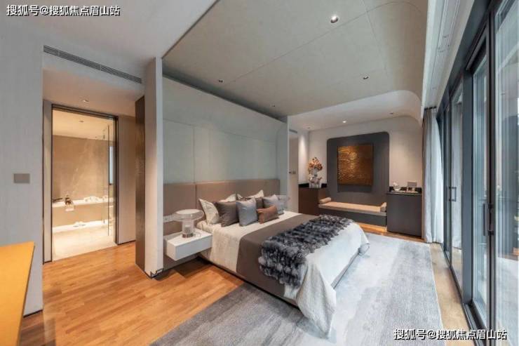 在观看实体样板间的时候,我就有被主卧宽阔尺度惊讶到,毕竟,一个使用面积超过30平米的房间,和一个10平米出头的房间,无论是功能性或是视觉效果,都不是一个概念。
