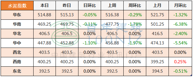 2月1日百年建筑网水泥价格指数486.7,日环比下降0.16%,全国26个首要城市P.O42.5散装水泥均价448元/吨,较上个交易日跌落1元/吨。要点城市:北京460-470元/吨;上海545-595元/吨;广州490-510元/吨;西安440-450元/吨。