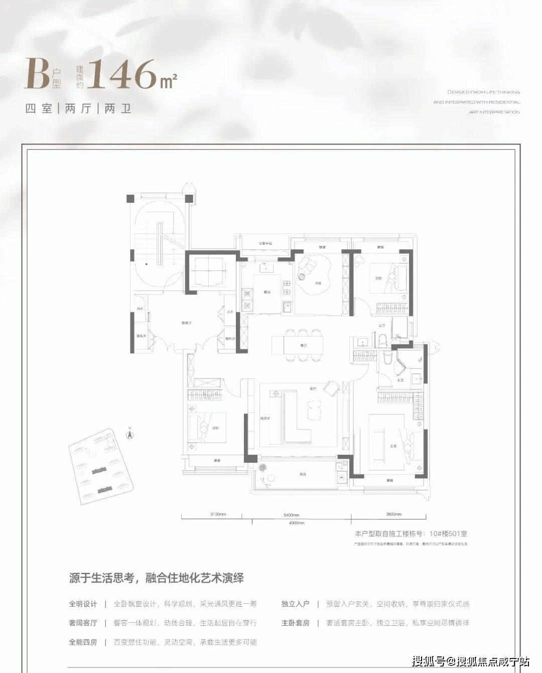 入户玄关一体化规划,开门就可以享受到的归家美学。●270°瞰景阳台,客厅5.4米面宽,最大极限欣赏美景。